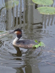 2009Fuut met nestmateriaal op sleeptouw.