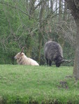 2009Schapen met enorme hoorns. Zwart en wit samen.